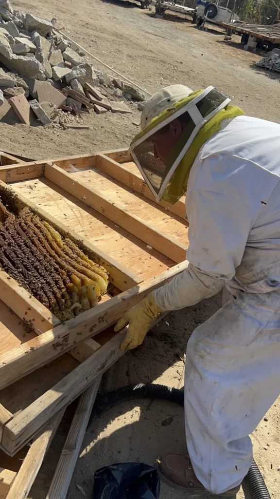 Unlike traditional extermination methods, TheBeeSmith specializes in same-day live bee removal performed humanely. Our team uses natural, pesticide-free techniques to relocate bees safely to local apiaries, where they can continue to thrive and pollinate.
